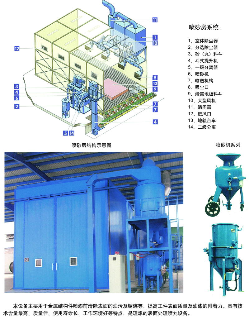 • 本設備主要用于金屬結構件噴漆前清除表面的油污及銹跡等,提高工件表面質量及油漆的附著力。具有技術含量最高、質量佳、使用壽命長、工件環境好等特點,是理想的表面處理噴涂設備。